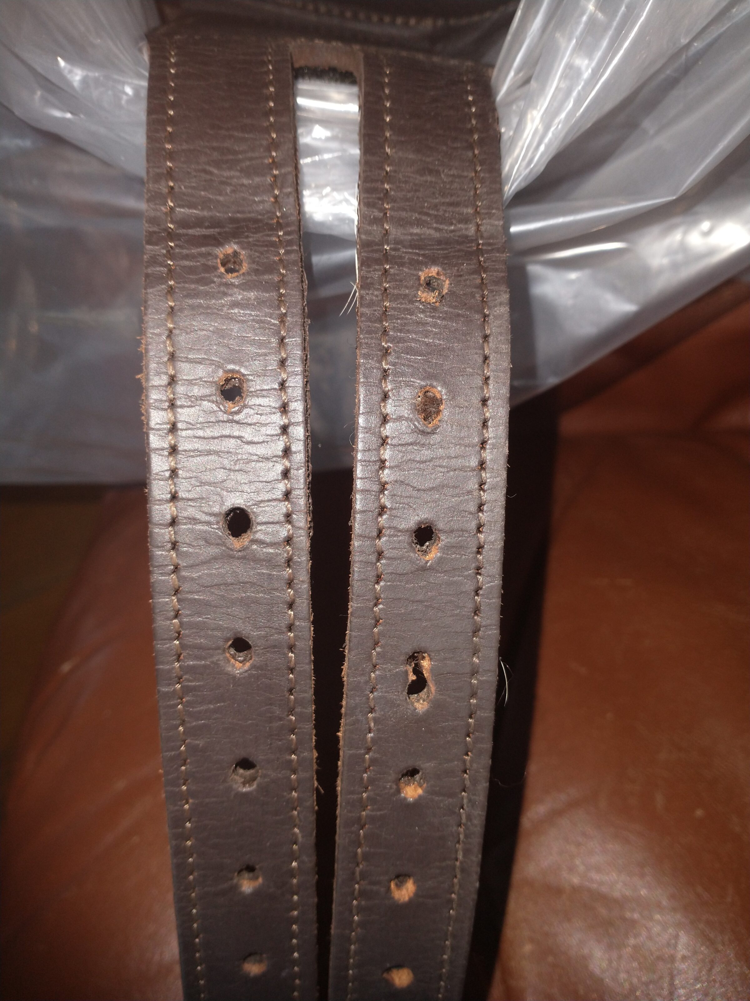 OBS. Demosadlen har en fejl på den ene gjordstrop, hvor et af hullerne er blevet lidt langt. Det har ikke betydning for sadlen brug. Se billede